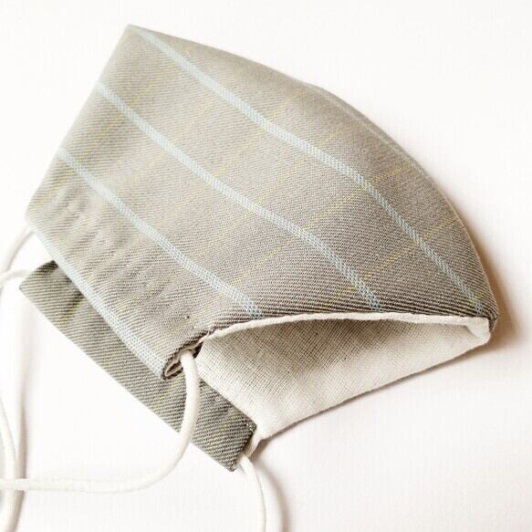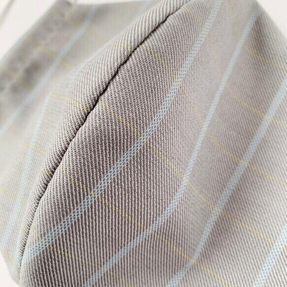 グレー×ブルー×イエロー 3色づかいのチェック柄 シワになりにくい手縫いマスク