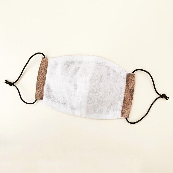 手編みニットみたいなWガーゼの手縫いマスク ふんわりやさしいブラウンカラー 着け心地軽やか