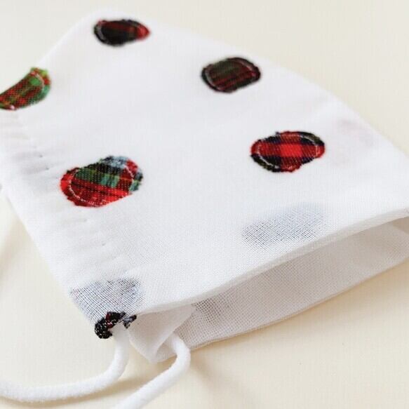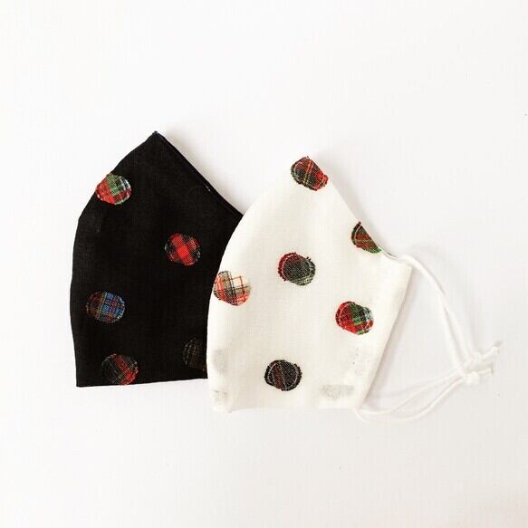 ベーシックなのに新しい《タータンチェック×ドット》手縫いマスク 裏地なめらかガーゼ使用(ホワイト)