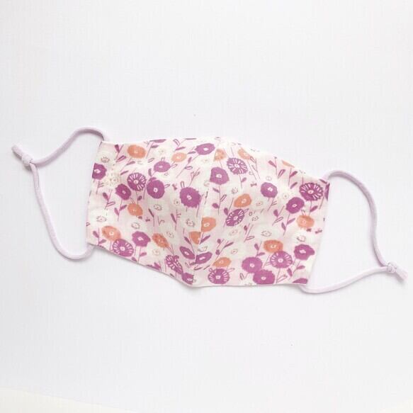 ふわふわガーゼの秋もよう 手縫いマスク ラベンダーカラー