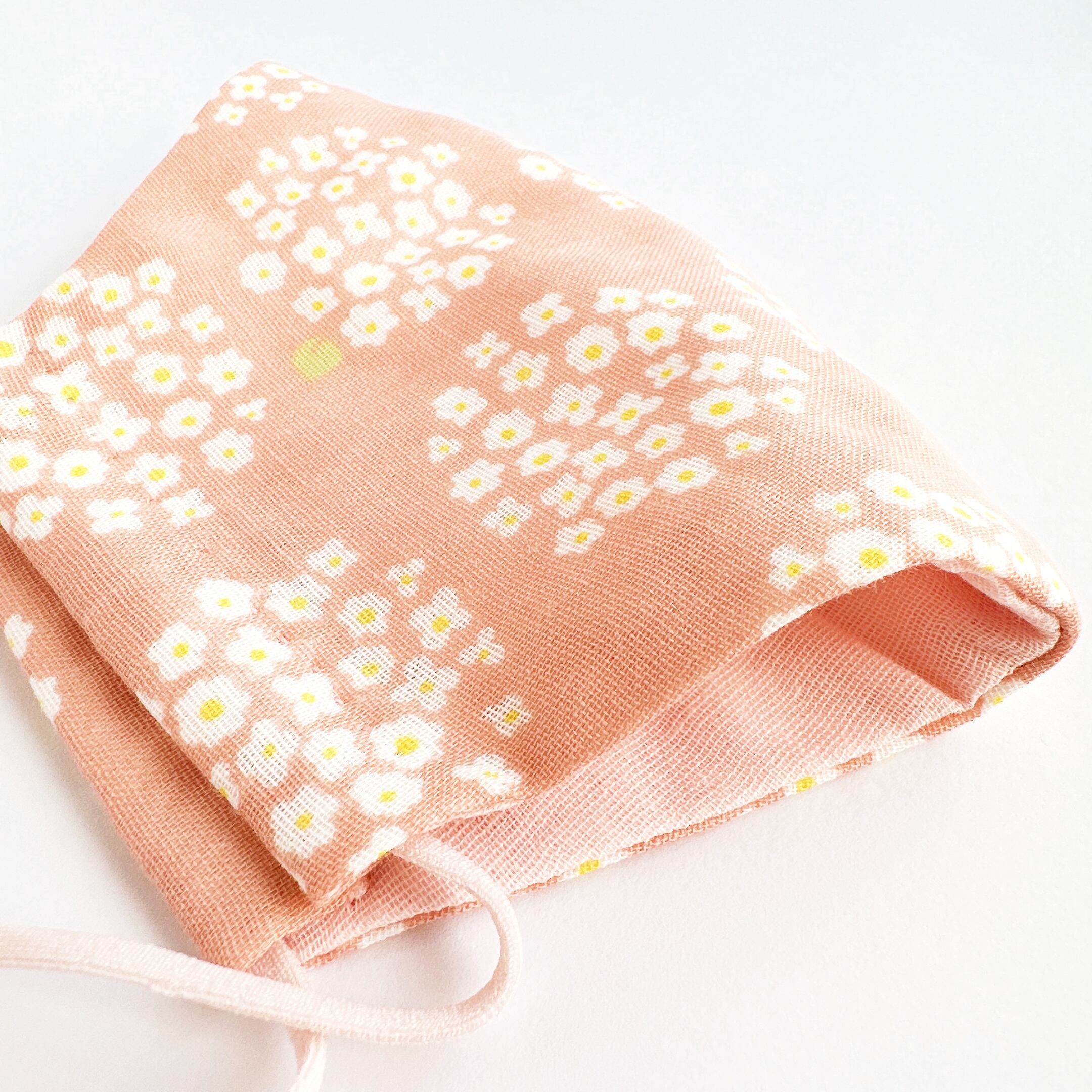 あじさいもようのやわらかガーゼのマスク 手縫い